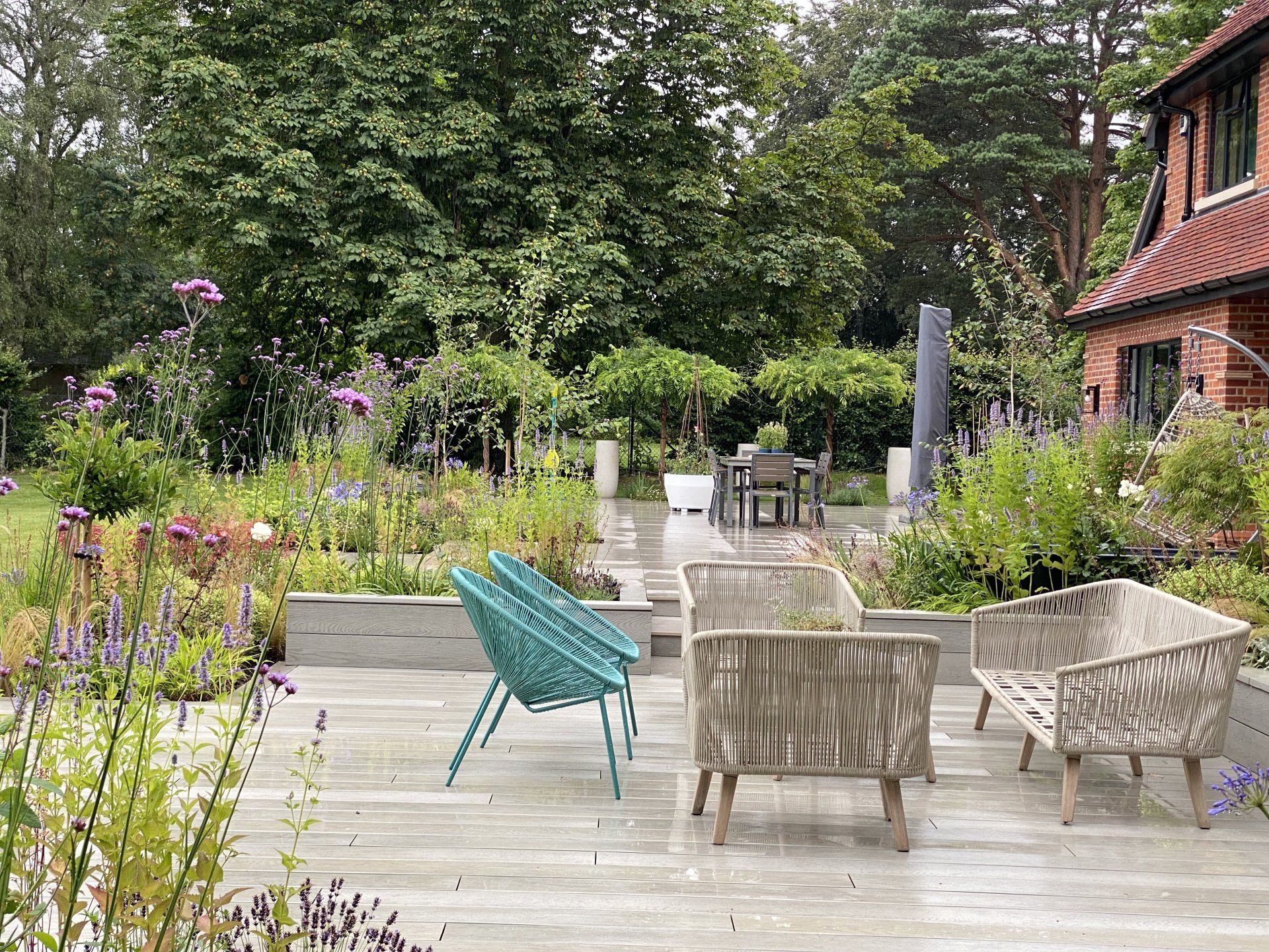 We work to client specification but if forced to say we had a landscaping and garden design style we loved most then we veer towards modern country gardens: strong modern lines balanced with soft, full layered planting that could just verge on the 'cottage' but the planting's strong colour theme and fabulous structural plants keep a contemporary edge to the garden, often reflecting the client's interiors. Please see our portfolio for examples of our work.