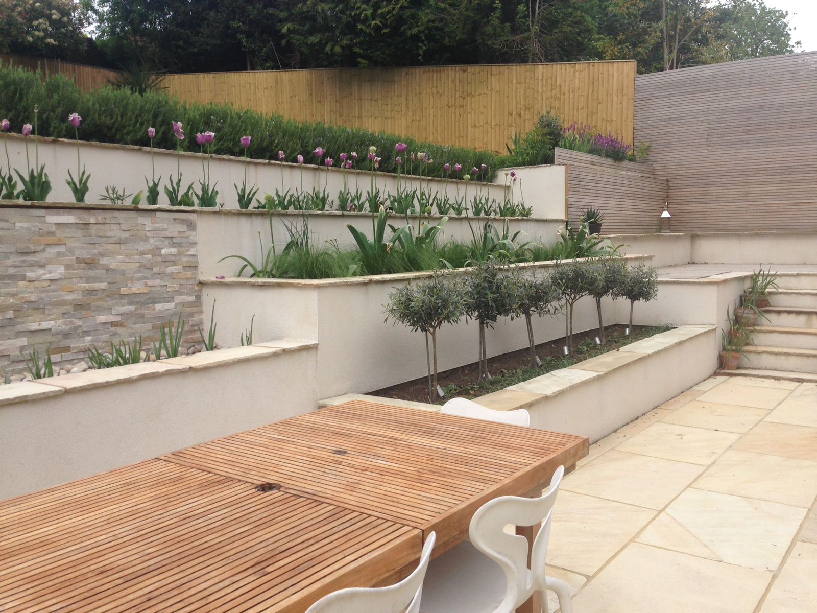 We started work in 2016 on a project for great clients who were extending their home into an already steeply banked garden. The new house design, by Heighway Associates Architects, was beautiful and the garden needed to reflect the style of the fabulous interiors.